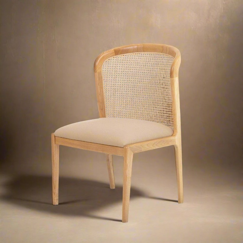 This handsome dining chair will add a touch of sophisticated style to any dining room. The expertly crafted teak wood frame provides ample support for the upholstered, cushioned seat.