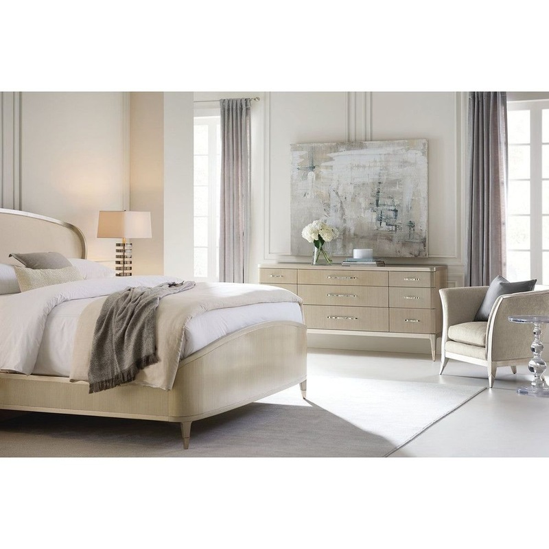 Abundantly graceful, this nine-drawer dresser will elevate the design quotient of any space. Its balanced silhouette is distinguished by Koto panels in Champagne Shimmer and highlighted with Taupe Paint inside and out. Look in the top left drawer and find an ultra-functional jewelry tray that makes it easy to find favorites. Yet it’s the remarkable drawer pulls crafted from insets of dark Mother of Pearl and highlighted with a Whisper of Gold finish that distinguish this gorgeous masterpiece.
