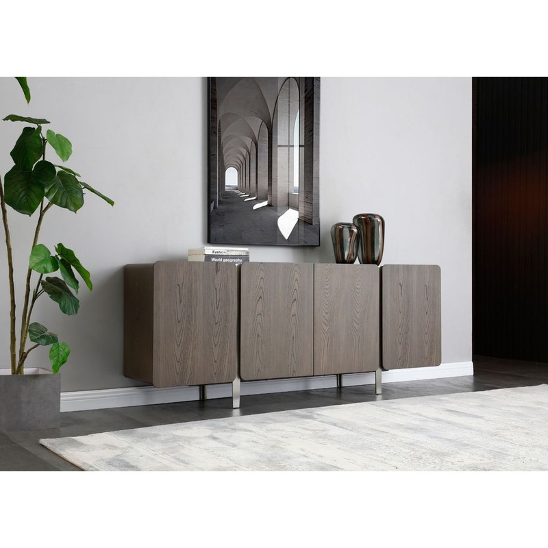 Add an overall aesthetic to any dining space with the Elena Buffet. The combination of veneer and stainless steel base provides an exceptional quality, impeccable style, and unmatched durability, creating a sophisticated and contemporary look.