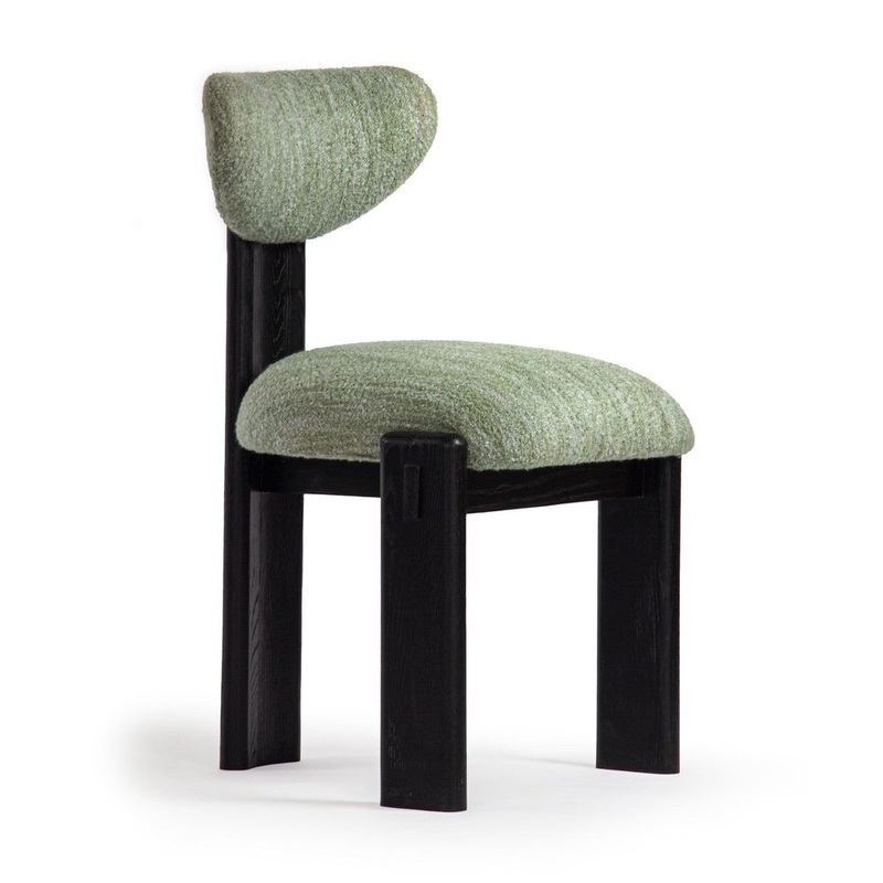 The Elio dining chair adds a soft, sculptural element to any dining space. 3 FSC-certified solid Oak legs support an organically shaped, upholstered seat and back cushion.