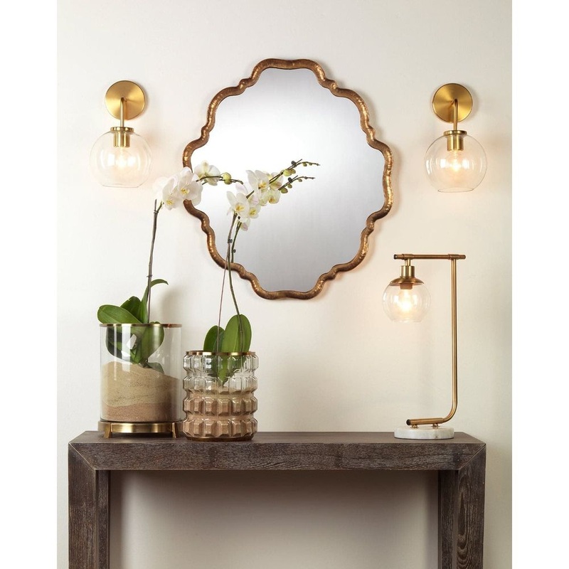 Antique gold and scalloped edges, this beautiful piece is a mix of unique design, yet versatile for most spaces.