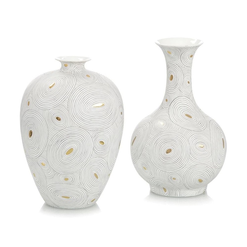 Description: Decorated with hand-drawn black circles and gold dots, this porcelain vase has a very artistic, yet elegant, appearance for any home.
