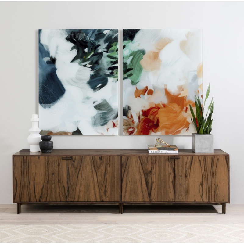Bold in color, expressive in shape, this two-piece set by California painter Patricia Vargas is printed on clear acrylic for a gallery-quality look with great impact. If not currently in stock, this texture-enhanced piece ships within three weeks. Handmade in Austin, Texas.