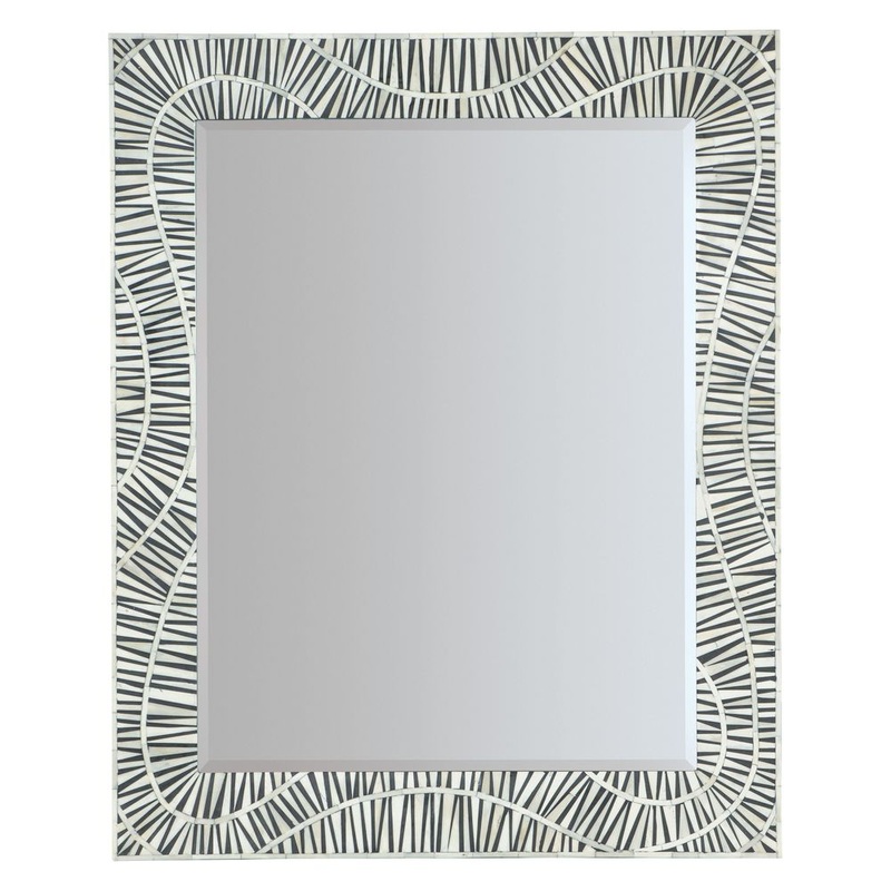 Description: With a tribal and primitive vibe, the Tiger Tooth Beveled Vertical Mirror has a black and white design and is crafted of Mango Solids, Bone and glass. The rectangle shape allows the mirror to be hung vertically or horizontally.