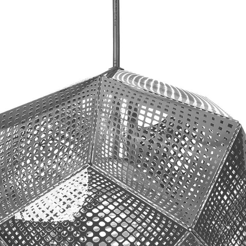 Inspired by Tom Dixon’s original design, this modern pendant lamp was influenced by the logic of pure mathematics. The intricate patterns have been etched with acid and allow light to gently flow through and cast intriguing shadows. A standard 60 watt bulbs inside the metal shade will provide plenty of ambient illumination. Available in gold or chrome.