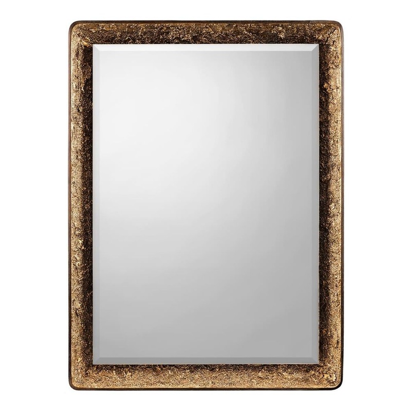 The Eterna Gilded Oak Mirror seamlessly combines natural elegance with contemporary flair. The rectangular oak wood frame features a textural Nugget Gold finish that beautifully pairs with the edges in a Falstaff finish. This stylish beveled mirror is affixed with French cleats and features a collection of LED lights powered through a plug and cord.