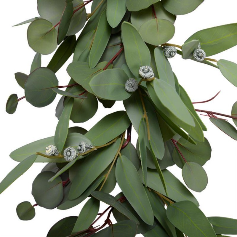 Elevate your space with our Echeveria Succulent. This Faux-fresh garland is 6 feet long, adorned with oval grayish-green leaves and small gray berries. Perfect for year-round use, decorate your doorways, arches, and mantels with this unique garland. Enjoy the elegance of eucalyptus without the maintenance. Intended for indoor use.