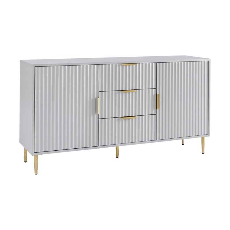 This stylish sideboard features a sleek ridged detailing with contrasting gold-tone legs and handles, adding a touch of glamour to your living or dining space. Use the three spacious drawers and two cabinets to keep your home looking tidy and organised. With a great blend of elegance and functionality, this sideboard is a standout piece.