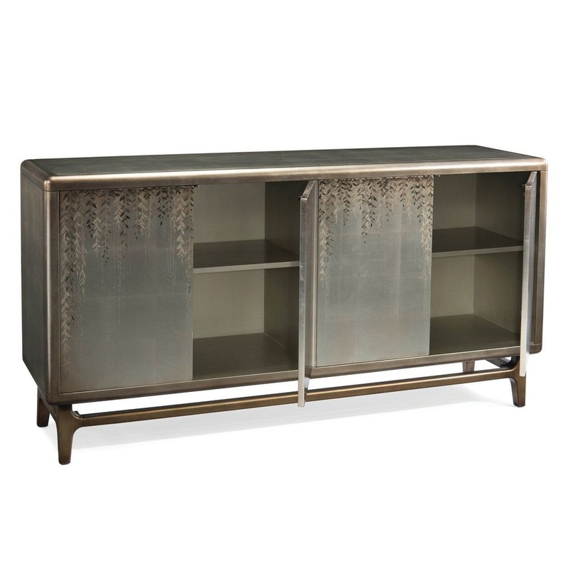 Description: Kensington vines are hand-painted over the misto silver leaf on the four doors. The moldings and legs are finished in a contrasting tone.