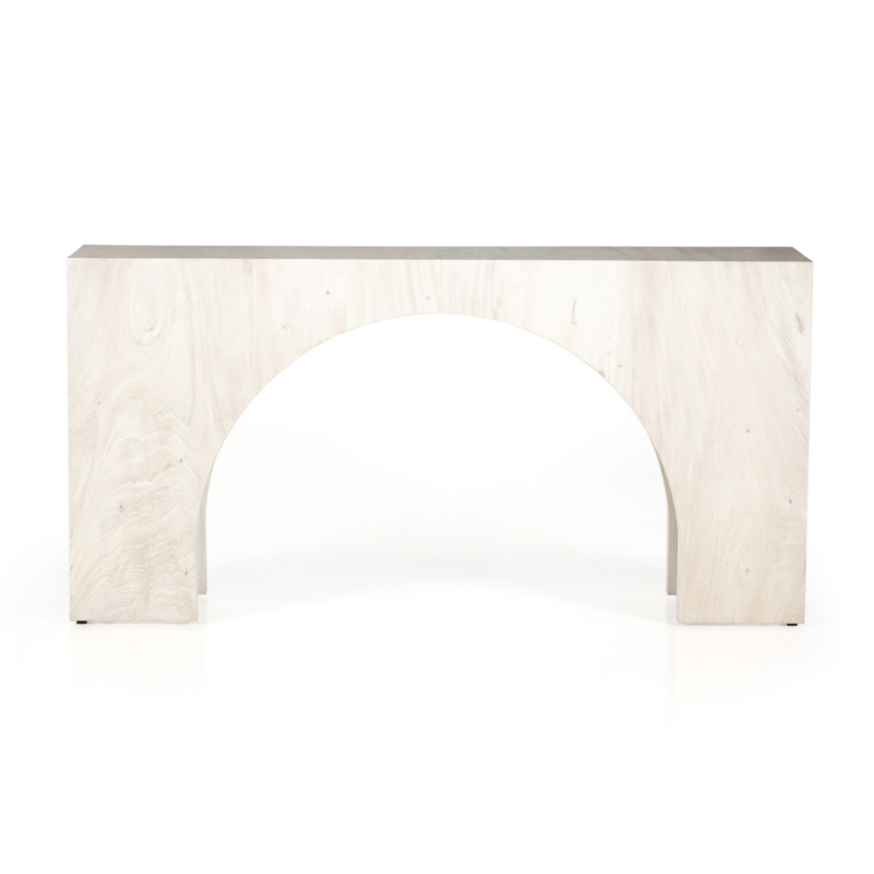Clean and simple, with great impact. Made from bleached Guanacaste, shapely arches and block corners speak to the architectural inspiration behind this eye-catching console table.