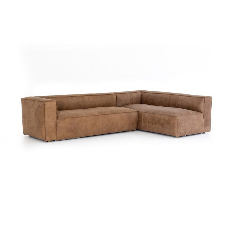 - Description: Timeless comfort is captured in this favorite sectional. Clean lines, sleek cushioning and refined arms are covered in tan, natural wash top-grain leather. Left arm facing piece two-piece sectional.