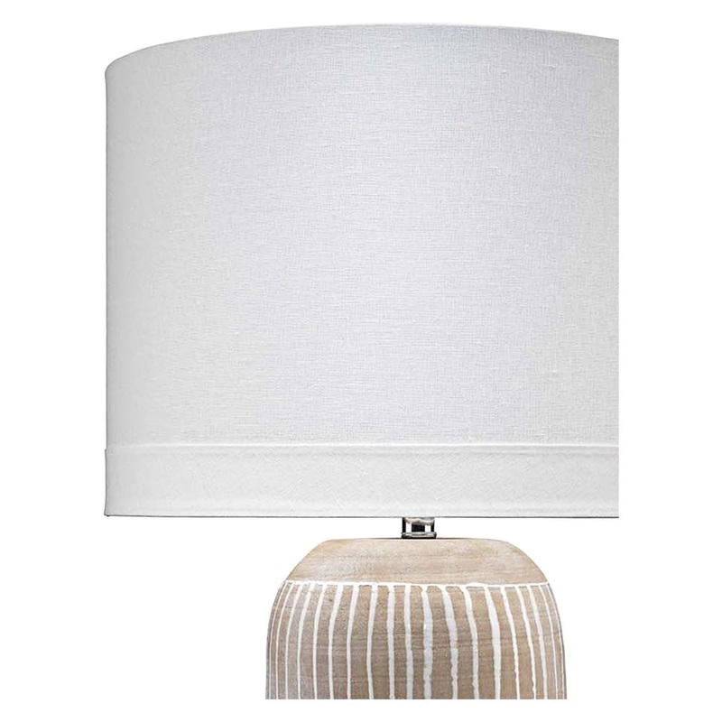 The Flagstaff Lamp draws inspiration from the natural texture and neutral shades of the desert. Reminiscent of sand, the body of this matte glazed ceramic demonstrates a balance of soft texture and geometric design. Each base has been hand molded to create a variance of shape piece by piece.