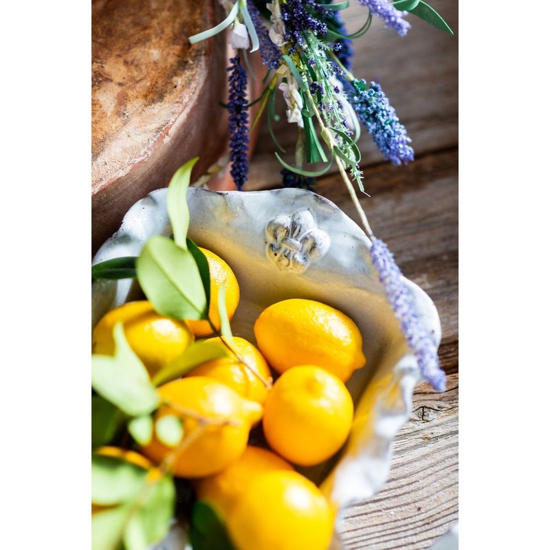 Description: This generous casserole is a real treat to own and to serve in. It is one of the most attractive items in the Fleur de Lis Collection. A nice ruffle edge is decorative and the raised Fleur de Lis symbol adds a design element. Made in Italy, this entire collection is a best seller! Microwave and dishwasher safe. Oven safe up to 350 degrees.