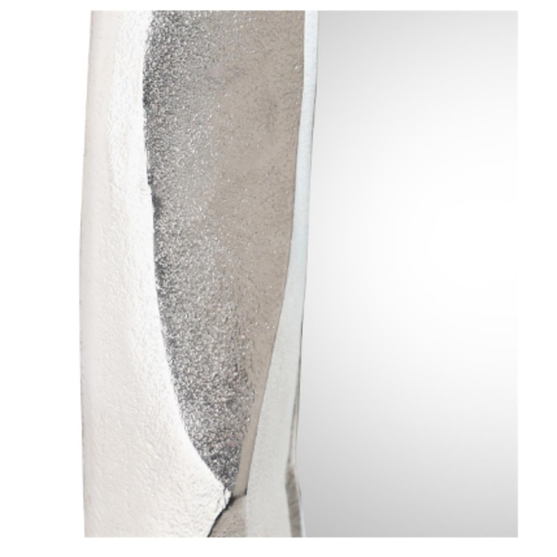 Floral Orbit Mirror is an elegant design statement that introduces a subtle touch of nature to an interior space. The circular brass frame in a Nickel finish displays a stylish, organic shape featuring three aluminum hydrangeas accented with gold leaves. This mirror is affixed with French cleats and may rotate a full 360 degrees.