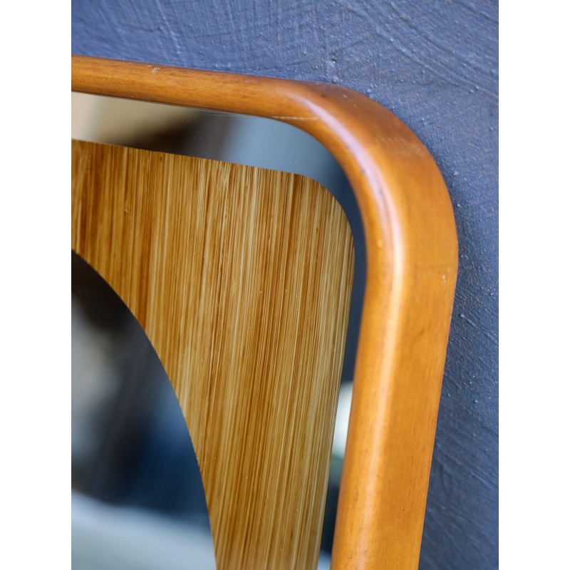 With its clean geometric lines and organic wood detailing, this mirror works beautifully in both modernist and eclectic interiors. Ideal as a hallway statement piece, above a console table, or as part of a decorative wall ensemble, it adds depth and visual character to any setting.