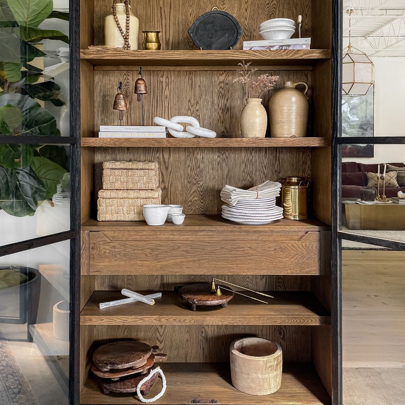The Frankfurt Cabinet has a black drifted oak frame with lighter interior shelving for a striking contrast. Glass doors allow for your showcased possessions to impress and the spacious interior drawer gives you a place to tuck away storage items. Top and bottom shelf are removable for storing larger items.