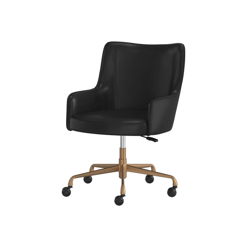Elevate your workspace with the Franklin Office Chair. This compact barrel back design exudes rustic and mid-century modern charm. Wrapped in a luxurious beige linen fabric and perched upon a rustic bronze aluminum base, this chair exudes sophistication. Added castors allow for easy mobility without sacrificing style.