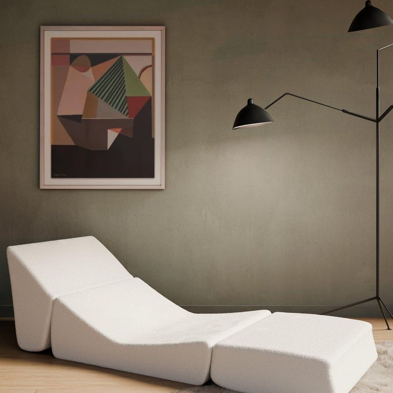 Experience the perfect harmony of timeless sophistication and modern comfort with this transformable lounge chair, a masterpiece that pays homage to the iconic Galeotta lounge chair from 1960s Italian design. The chair brings the allure of mid-century Italian design into your living space with a contemporary twist. This is a lounge chair that can be easily turned into a chaise longue or a daybed. Featuring a plush, generously padded seat and backrest upholstered in a sumptuous off-white boucle fabric this chair is a dream to sink into. Designed for ultimate relaxation, it offers the perfect blend of support and softness for hours of comfortable lounging.