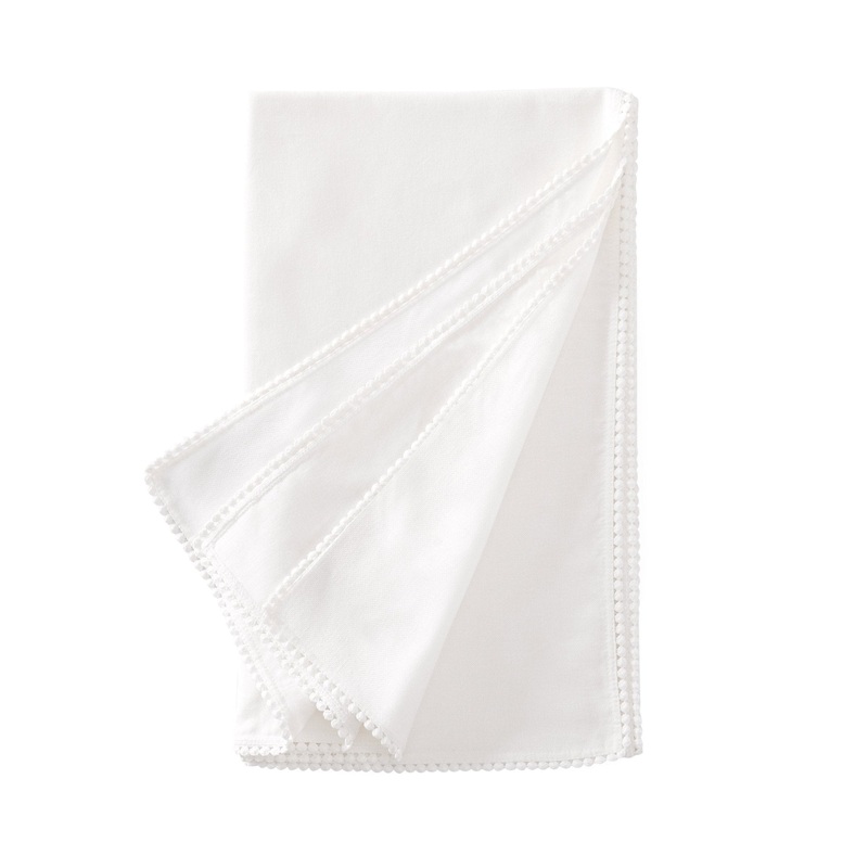 Crafted from high-quality white cotton fabric and finished with a pom pom trim, this single-sided tablecloth is a playful but sophisticated addition to your dining table. Perfect for dinner parties or family nights, its an easy way to bring a touch of fun to your table.