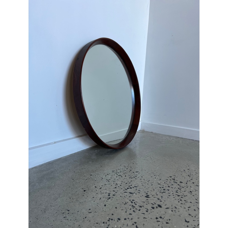 Glas & Tr Hovmantorp Round Wall Mirror in Teak, Sweden 1950s.