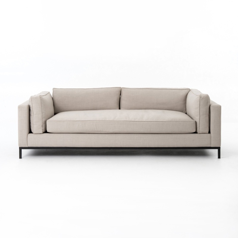 Flexible style with luxurious comfort. Clean, simple lines and a black iron base keep everything casual and chic.
