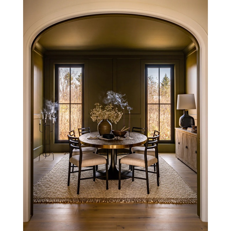 The Grandor Dining Chair redefines the classic ladderback chair with fresh materials. Scrubbed oak framing is finished in carbon for a clean, open look with natural depth. The carbon-toned seat is made from a cotton-linen blend for a textured feel and comfortable sit.