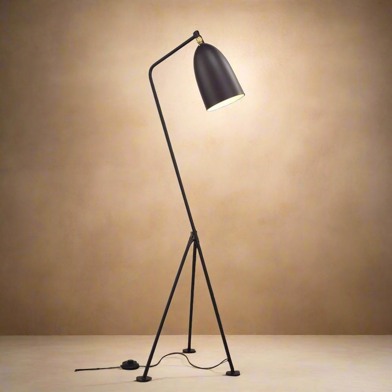 This mid-century modern reproduction of Greta Grossman’s 1947 design is perfect for any home. Crafted from tubular steel and powder coated in a matte finish, its tripod stand is tilted backward to create a sleek silhouette. The conical shade is connected with a ball joint and may be easily repositioned, allowing you to direct the light exactly as desired. Despite utilizing a standard 60 watt bulb, its minimal glare and adjustable shade make it ideal for placement behind a favorite reading chair.