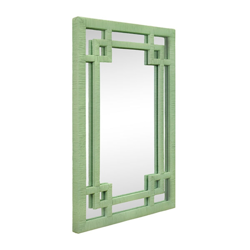 Description: GREEK KEY DESIGN MIRROR IN WRAPPED RATTAN IN SAGE GREEN40″ H x 27″ W x 2″ DCan be hung both vertically and horizontally.*Rattan has natural variations and may differ slightly between panels.