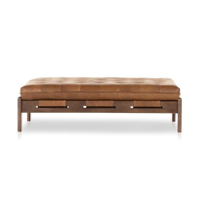 A Seventies-era style inspired by a flea market find. Top-grain leather features dramatic tufting with sling detailing and wide ash framing below. Sourced from one of the oldest family-owned tanneries in Italy’s Bassano del Grappa, heirloom leather is salvaged and processed from upcycled hides featuring an abundance of natural markings, scars and color variations. The result? Beautifully supple, buttery soft hides with an unmatched depth of color and richness, and an authentic lived-in look.