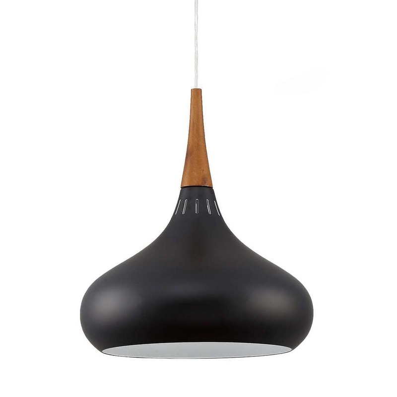 This contemporary reproduction of Jo Hammerborg’s 1963 Oriental Pendant Light will be the perfect danish style pendant for any contemporaryspace. The elegant curved shade is topped with a solid-wood accent that creates a wonderful contrast of colors and textures.