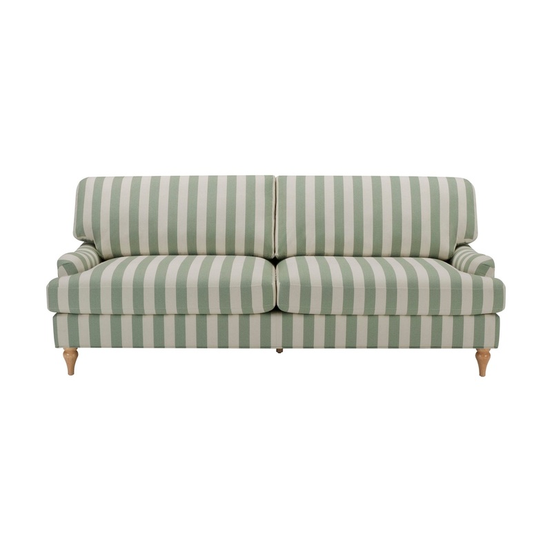 The perfect addition to any home interior, the Hampshire 3 seater sofa is flawlessly crafted with a premium traditional weave fabric in a beautiful green stripe. With soft, natural lines,the Hampshire provides the ultimate comfort and longevity with a pocket sprung seat and back cushions that give a firm, down like feel. It also comes complete with warm oak wooden legs for an added touch of irresistible charm.