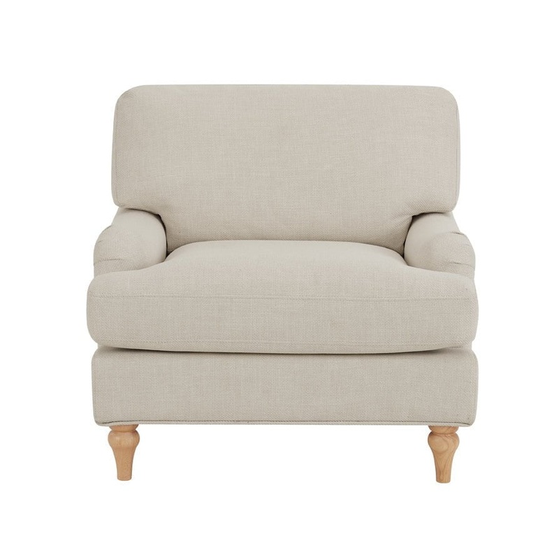 Beautifully crafted with a textured weave fabric in soft beige, this armchair has smooth, gentle lines, and a foam and fibre filled seat and foam filled back cushion for undeniable comfort.