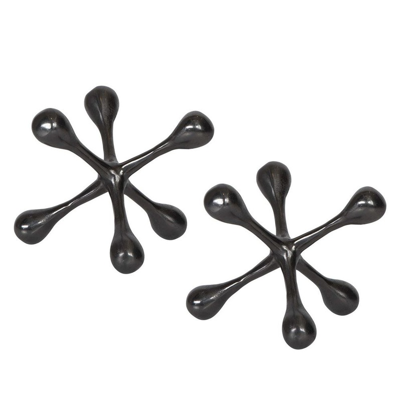 Set of two, cast aluminum decorative objects feature a black nickel finish.