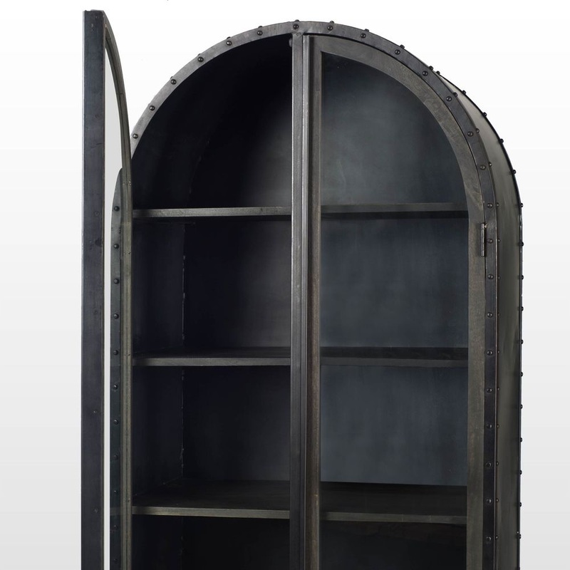 Description: Haverton II is an antique style, full-size metal cabinet with a curved top and wooden accents.