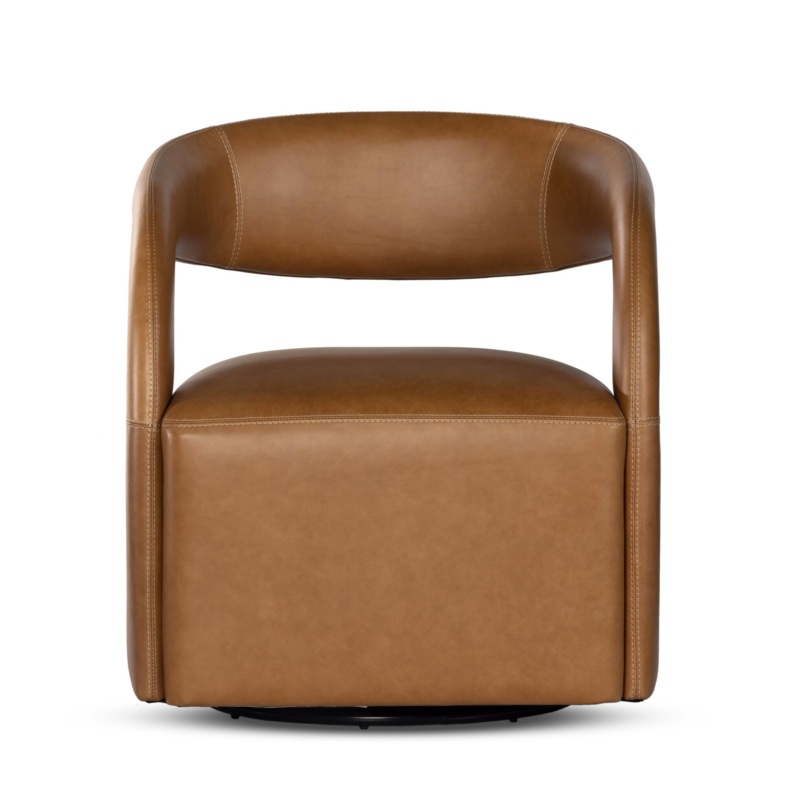 This 360-swivel update of the fan-favorite stationary design makes quite the statement. Well curved and finely sculpted, butterscotch-colored top-grain leather exclusive to Four Hands makes a uniquely shapely statement in any room.