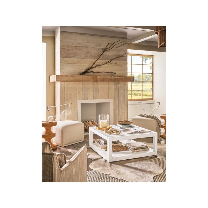 The Hermosa Square Cocktail Table is a divine statement piece with a clean white finish and open-air shelving, allowing a variety of serene interiors to be built around it with ease.