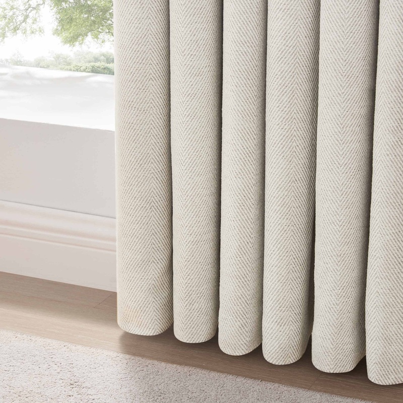 Available in both Eyelet and Pencil Pleat styles, our Herringbone Blackout Curtains come in two versatile shades – off-white and light grey, so you can find the perfect match for your decor.