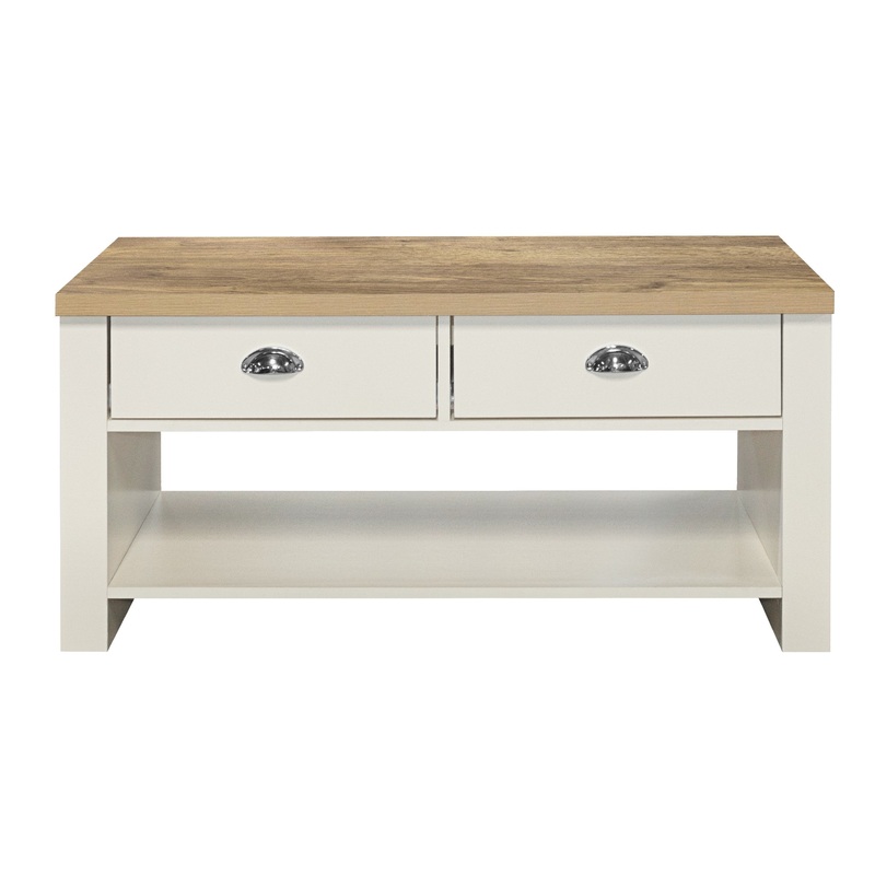 An excellent addition to your living room, this Highgate 2 Drawer Coffee Table creates a stylish centerpiece great for relaxing with family and friends. Featuring two extremely convenient push and pull drawers with silver cup handles, this table also has a large lower shelf, great for storing books or other items. An easy way to keep your house looking neat and tidy, this table is a great addition to your home.