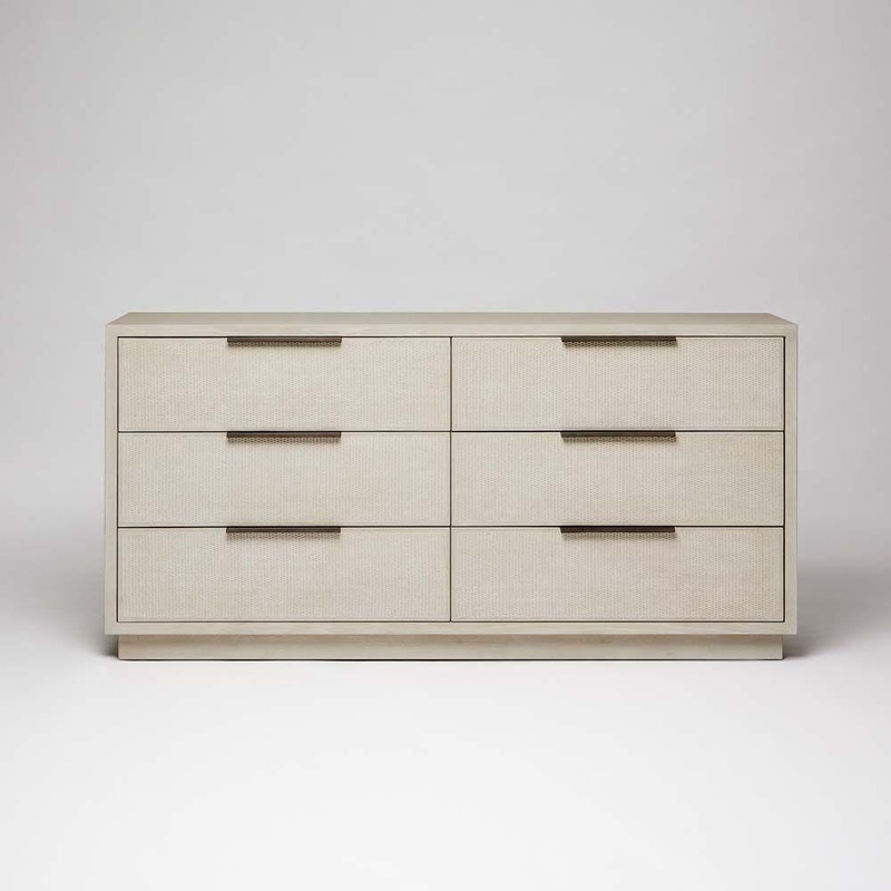 Crafted of oak in a cliffside or harvest finish and featuring rattan drawer fronts, the Holmes 6 Drawer Chest delivers organic texture and natural flair.