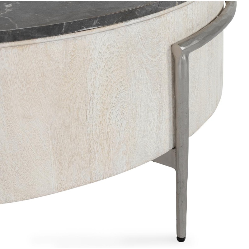 Introducing the Honor 42″ Round Coffee Table, where luxury and durability meet. The unique mango wood base, water-based matte finish, and nickel-finished tapered legs complement the gray stone top laminate for a sophisticated look. Keep it looking new with the adjustable levelers and protectors.