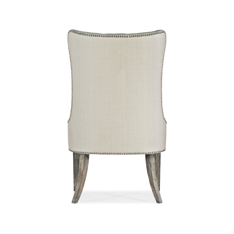 A perfect choice for the discerning design aficionado, the sophisticated Hostesse Upholstered Chair combines plush button tufting, a wing-style back and silver-colored nailhead trim. The performance fabric is metal diamond, a creamy color with silvery undertones. Channeling jet setting socialites from the golden age of Hollywood as its muse, Hooker Furniture is set to launches a major expansion to its popular Sanctuary collection. The bedroom, dining room, occasional and home office pieces are grouped into three unique new personas, each of which embody the influences of the iconic starlets whom left impressions of glamour, charm and class on American pop culture. From bold and dramatic to soft and romantic to a statement-making eclectic lifestyle, the three personas Collette, Anastasie and Diamant effortlessly bring to life a well-traveled socialite who has curated a collection of home furnishings in her metropolitan home that tell the story of her travels across the globe. Anastasie offers a softer, romantic look with its creamy white finish that is accented with champagne and silver tipping. Several historical reproduction styled pieces in a two-tone finish are intermingled throughout, giving the group a bit of a traditional European cottage style. Additional design details include table tops with intricate quatrefoil veneer patterns crafted with oak and a mix of unique walnut inlay, carved chairs with acanthus leaf and scrollwork detailing and champagne tipped eglomise.