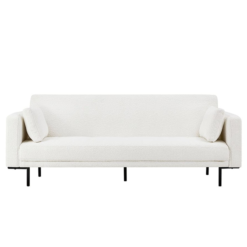 Made with a stunning, boucl fabric in a classic shade of off white, attention has been paid to every detail. With a subtle piping design and black metal legs for a contemporary look and feel, the Hudson Click Clack Sofa Bed is the ultimate in both style and comfort. With a click clack mechanism and concealed additional supporting legs, simply lower the legs at the back of the sofa, for a smart and seamless transition from 3 seater sofa to small double bed.