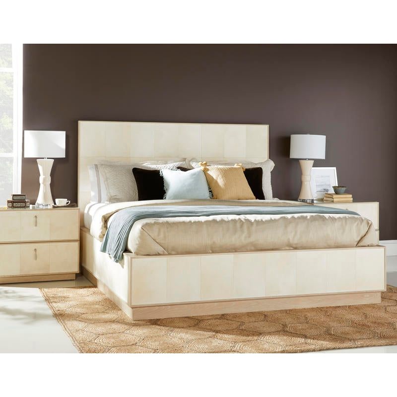 Description: Genuine, untreated parchment panels are sealed with a clear coat for durability.Oak framed headboard, footboard and side rails.Plinth style oak base.Includes mattress support board; no boxspring required