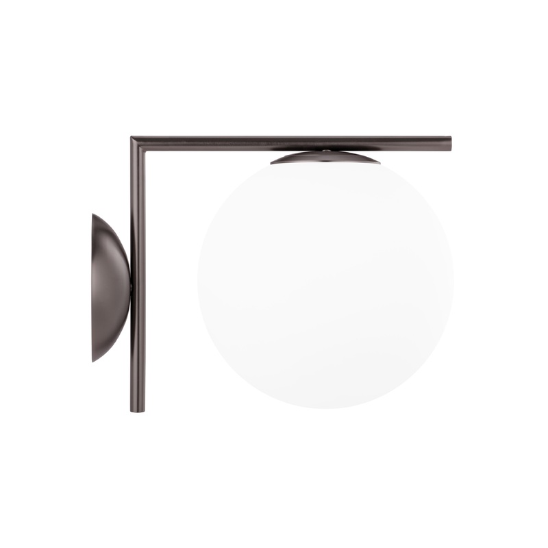 Undoubtedly a thing of beauty and elegance, the IC Wall Light was inspired by the poise and grace of a talented juggler. This sconce features an L-shaped metal bracket which holds the opaline glass orb as if by magic. The intention for the orb to appear weightless is executed stunningly, resulting in a piece which is both visually intriguing and refined. Thanks to its high quality materials, the sconce can be mounted at any orientation.