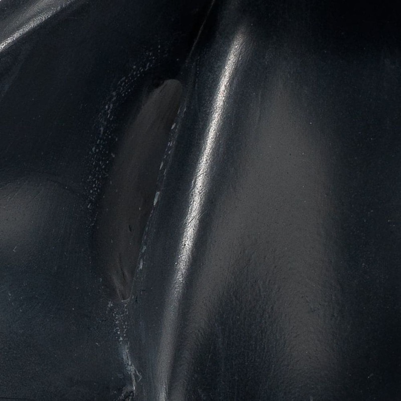 This organically shaped object is placed on a museum worthy stand to elevate substantial straps of black resin that wrap and twist around a center void, creating a piece full of smooth curves and visual interest. A beguiling addition to a stack of books or coffee table curation, it is an unexpectedly intriguing accent ideal for any modern decor.
