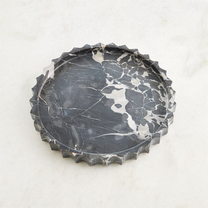 Description: Elevate your decor with the Ionic Jars and Trays, showcasing a sophisticated fluted design in exquisite Golden Portoro marble from northern Italy. Renowned for its striking black backdrop and rich golden veining, each piece is a unique creation, celebrating the natural variations that make marble truly special.