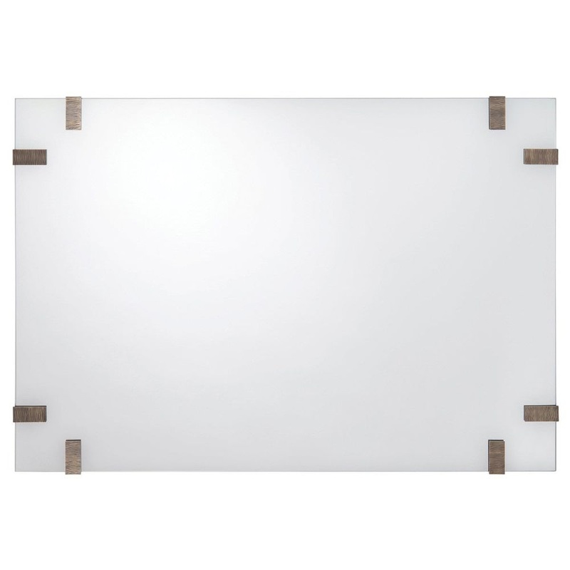 Description: A simple clean modern mirror on a silver leaf edged mount. A set of eight cast brass and textured brackets complete this simple but sophisticated design.