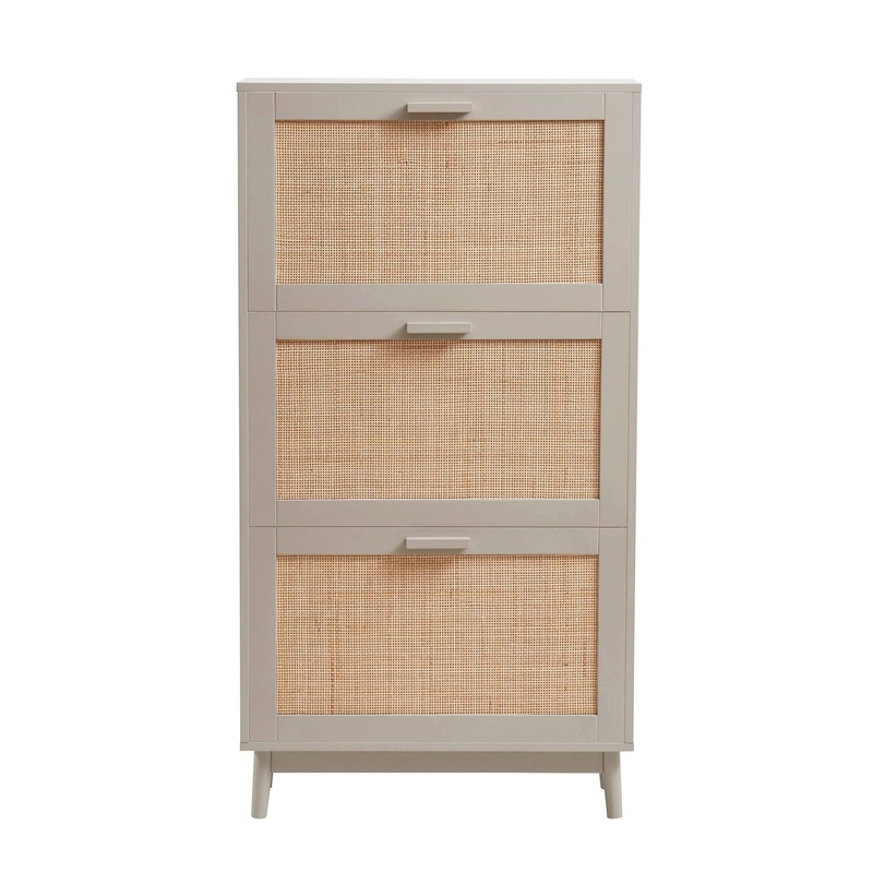 With its beautiful rattan features and natural, cream, black, or taupe finishes, the Isla Shoe Storage Unit blends function with a charming design. The three spacious tiers offer plenty of room to neatly store your shoes, keeping hallways or bedrooms clutter-free.