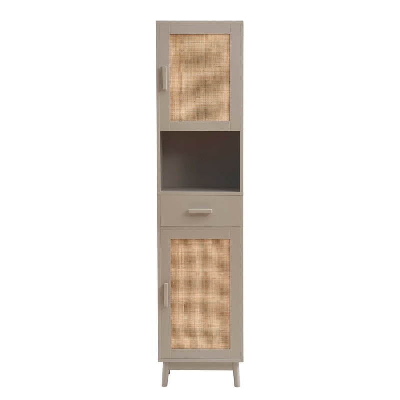 Designed with beautiful rattan features and finished in natural, cream, black, or taupe, the Isla Tall Storage Unit combines natural charm with versatile practicality.