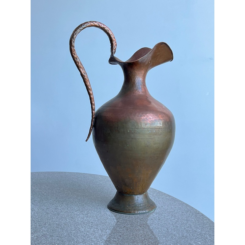 The Italian hammered brass vase is known for its unique and distinctive appearance, which is achieved through a process of hand-hammering the brass material. This process creates a textured and uneven surface that reflects the light in interesting ways and gives the vase a rustic, artisanal look.